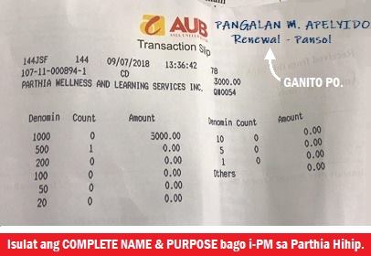 After reserving a slot and confirming the seminar date and venue, just pay the seminar fee in any branch of Asia United Bank. Then, post your AUB transaction slip on the renewal chat group on Facebook.