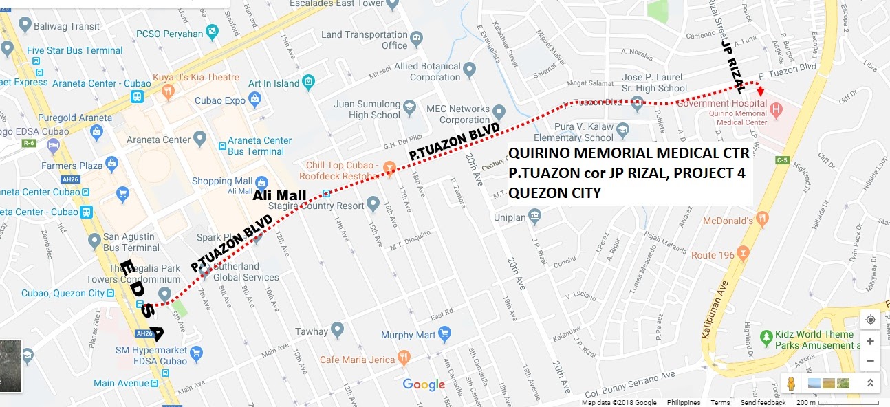 TAKE A BUS TO CUBAO-ARANETA, THEN TAKE A JEEP AT P. TUAZON TOWARDS KATIPUNAN.