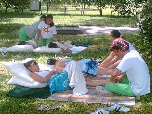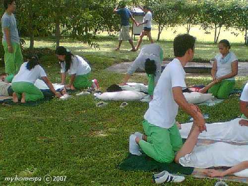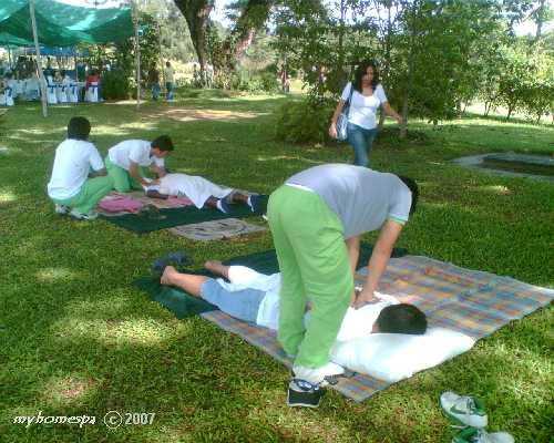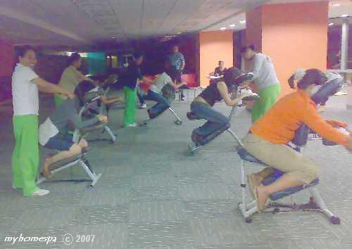 As the day wore on, more people fell in line for their turn at ultimate relaxation. Office workers massaged regularly are more alert, perform better and are